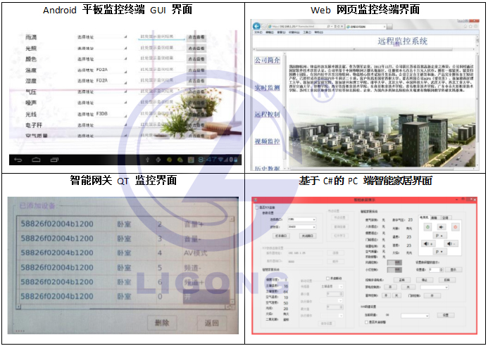 系統軟件默認采用 C/S 結構,主要包括無線網絡傳感器數據透明傳輸軟件、智能網關基于 Qt 的智能家居系統軟件、基于 Android 的智能家居系統軟件、基于 C#的智能家居系統軟件。同時系統提供基于 B/S 體系結構的智能家居網絡化遠程監控軟件。