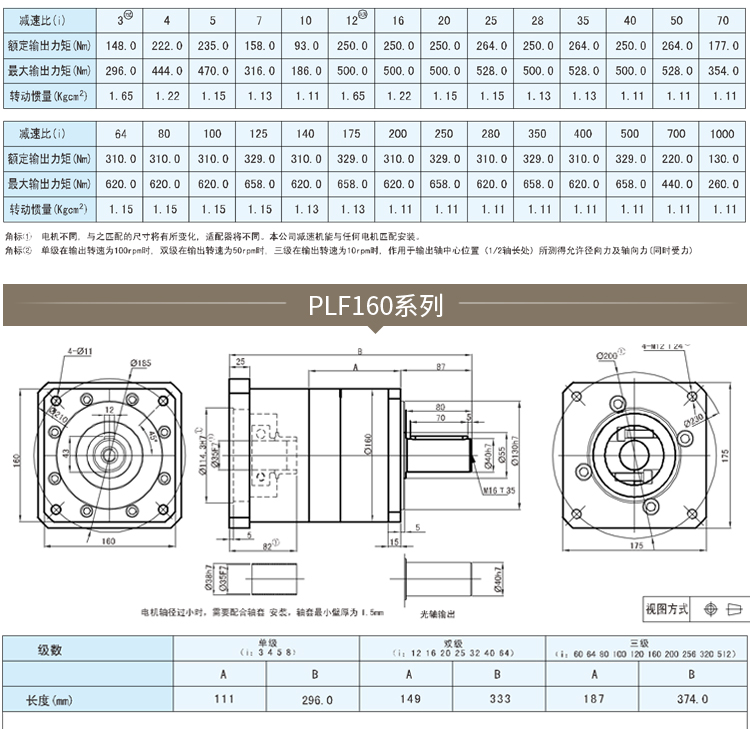 行星減速機特點:產(chǎn)品全面升級,采用前后油封,齒輪配件日本進口,國際知名品牌NSK軸承,具有高精度、高鋼性、高負載、高效率、高速比、高壽命、低慣性、低振動、低噪音、低溫升、外觀美、結(jié)構輕小、安裝方便、精確定位等特點,適用于交流伺服馬達、直流伺服馬達、步進馬達、液壓馬達的增速與減速傳動。能與任何電機匹配安裝(如松下,安川,三菱,西門子,富士,臺達,東元,臺安,匯川,信捷,埃斯頓......)電機不同,與之匹配的尺寸將有所變化,適配器將不同,配特殊電機可以訂做?。?/strong>