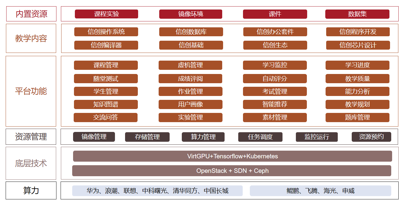 一、建設(shè)方案 高校信創(chuàng)實驗室主要包括數(shù)智化實踐教學(xué)平臺和信創(chuàng)課程資源。 數(shù)智化實踐教學(xué)平臺采用國產(chǎn)化技術(shù),實現(xiàn)云計算資源的集中共享、統(tǒng)一調(diào)度管理的技術(shù)創(chuàng)...