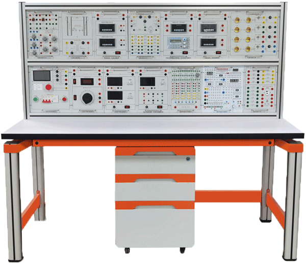 電工技術綜合實驗平臺由實驗桌、實驗臺架、存儲柜、實驗掛箱組件、配件等組成。