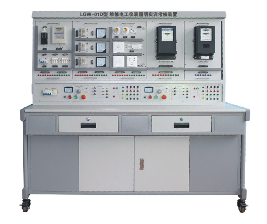 LGW-01D 維修電工儀表照明實訓考核裝置是按照勞動和社會保障部頒發的“工人等級標準”和“職業技能鑒定”的要求而設計的,該裝置集理論、實際操作和考核鑒定為一體的多功能設備。它不僅能作為電工儀表和照明電路的操作實訓裝置。而且也可用于勞動職業技能鑒定部門、大中專院校、職校、技校對初、中、高級維修電工技能考核的理想設備。