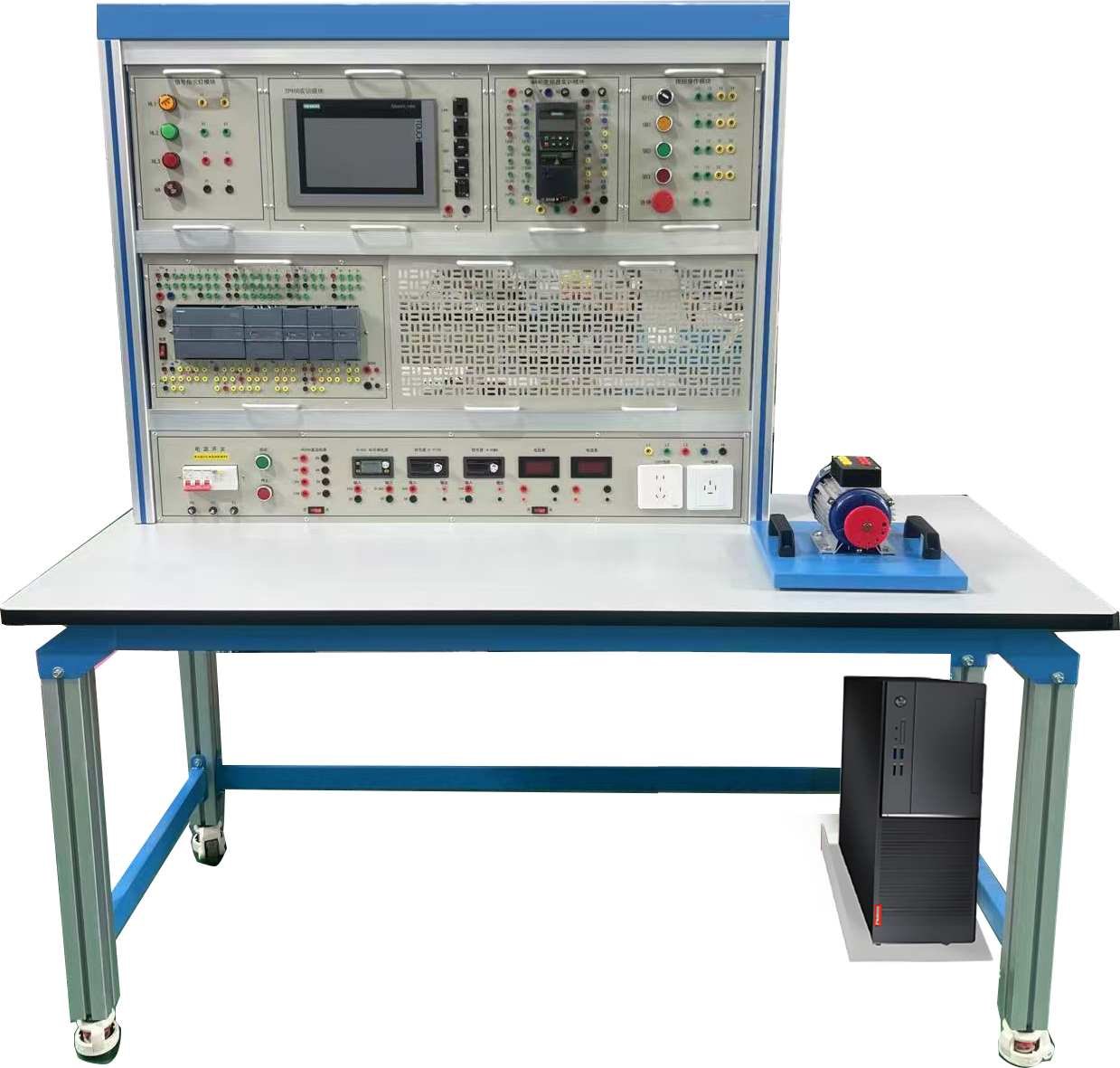 PLC實驗裝置由控制屏、實訓桌、主機實訓組件、實訓模塊(含豐富的工業現場設備模擬實訓對象)、變頻器掛箱、觸摸屏掛箱、交直流電機、總線單元、通信模塊、電機導軌、測速機構等組成。