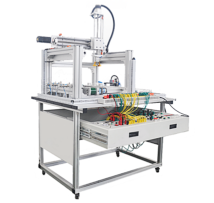 LGJX-82E型 立體倉庫實訓裝置(電腦學校自備或代配)是根據實際工業生產應用中使用的高架立體倉庫為模本,進行了相應比例的縮小而設計完成的具有實際操作功能和實訓功能的一套產品。裝置針對機電一體化實訓教學的要求而研發的,它集PLC控制、位置控制、檢測、工控組態、觸摸屏監控技術于一體的實訓教學裝置,通過傳感器信號采集,PLC編程,對步進電機、直流電機進行較復雜的開關量控制、位置控制及時序邏輯控制,實現倉位定位和物料入庫/出庫的功能。裝置采用全開放式布局且具有設故排故單元,可充分鍛煉學生系統接線、機械調試安裝、軟件編程、獨立構建控制系統、反饋整定、故障檢測及檢修的能力。適合于機械制造、機電一體化、自動化、電氣工程等專業的《機電傳動與控制》、《運動控制》、《機電一體化技術》、《計算機控制技術》、《檢測與轉換技術》、《可編程控制技術》等課程開設實訓課。本裝置的左右移動和提升采用了導軌和步進電機相結合方式。以常見的各種物品為倉庫的存取對象,通過PLC的控制可以完成物品分類、出庫、入庫等工作。使用VisuaIBisic6.0開發的上位機控制軟件,管理物品的出入庫等工作。