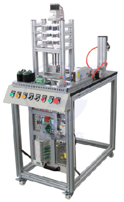 由步進電機、步進電機驅動器、滾株絲桿、立體庫、推料氣缸、電感傳感器、電磁閥、電氣安裝板等組成。主要完成對成品工件分類存儲。