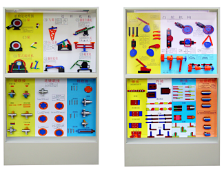CLG-107型 機械綜合陳列柜是根據大中專院校、職業學校的教學大綱設計的多功能機械綜合陳列室是一套《機械原理》《機械零件》《減速器》三合一綜合陳列柜,共500余種模型分三大類合并成的電化教學設備。共15個柜,30個板面,由上下電動升降電腦控制主控臺控制。機械原理與減速器采用CD解說,遙控控制,聲控同步進行演示;又根據教材、教學需要而任意選擇單獨運轉演示。制作材料采用進口有機板和硬聚氯加工;板面附面有銀滌淪不干膠作必要的圖表和文字說明。演示逼真,運行自如可靠,制作工藝美觀。本產品的特點:使作方便,占地面積小,結構新穎實用,是一套現代化的機械課程陳列室設備。