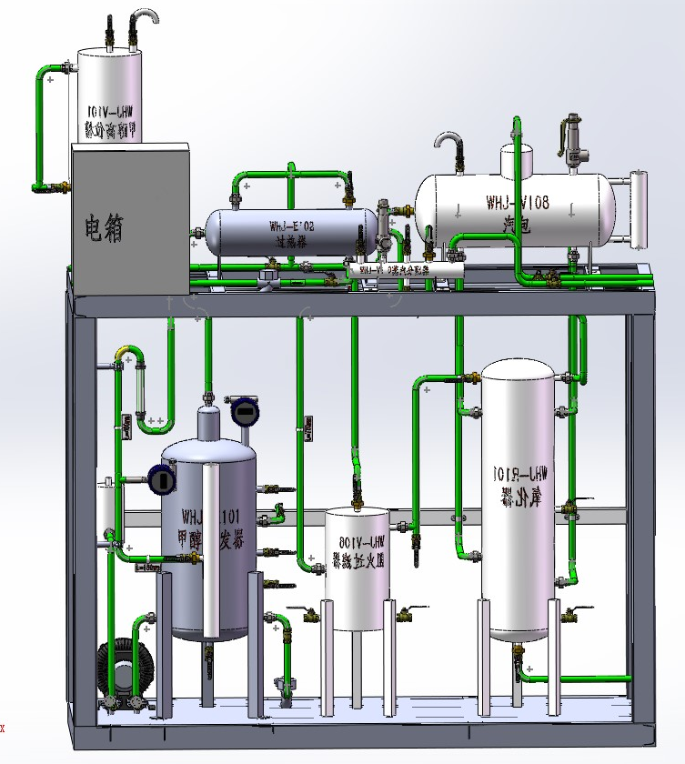 一、裝置特色 整套裝置由鋼制安裝框架、甲醇計量槽、甲醇汽化器、氣體混合器、氧化器、仿真儀表、就地計算機操作臺、、就地智能儀表控制上位監控軟件、外置配套...