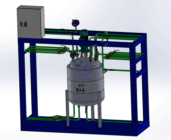 一、裝置特色 整套裝置由鋼制安裝框架、聚合釜、換熱器、凈化釜、仿真儀表、就地計算機操作臺、、就地智能儀表控制上位監控軟件、外置配套設備等組成,工藝路線...
