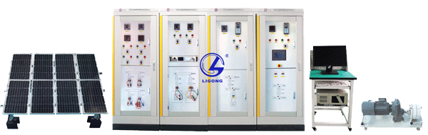 發電機電源模擬單元由永磁發電機組、拖動異步電機、智能匯流箱裝調與檢測模塊、光伏組件等組成。發電機采用永磁發電機,通過異步變頻電機進行拖動,可模擬發電機在不同工況下的發電輸出;光伏發電單元既可以由光伏模擬器和光伏控制模塊,也可以由光伏組件和匯流箱檢測模塊組成,模擬光伏板或者真實光伏組件的各種特征;微電網分布式能源接入系統由光伏控制器、風力控制器、直流功率計量儀表、分流器、變頻調速器、測試端子、通訊網關等組成。主要完成對分布式能源的接入、分布式發電的計量與保護。