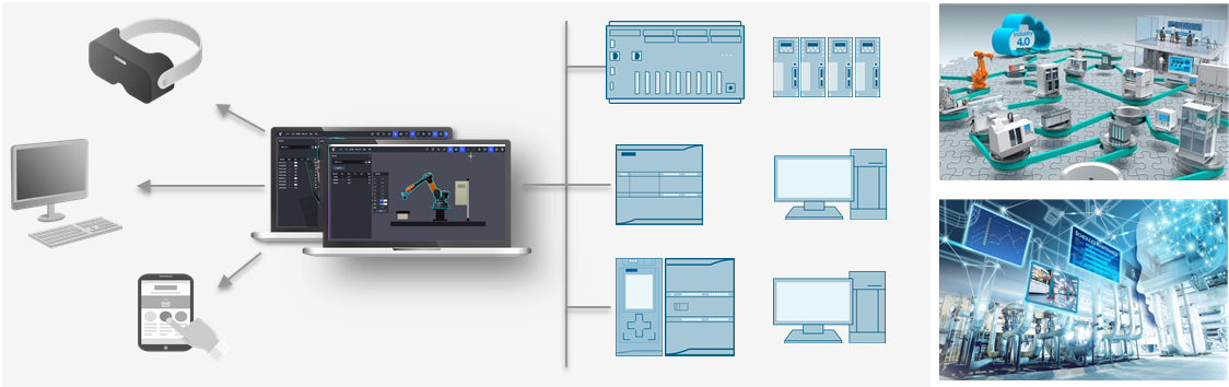 LG-TVP01型 數(shù)字孿生系統(tǒng)能夠從虛擬機(jī)械設(shè)計(jì)、虛擬電氣接線再到虛實(shí)互動(dòng)編程,虛擬調(diào)試以及集成調(diào)試的整個(gè)過(guò)程,同時(shí)配置XR互動(dòng)仿真,能夠?qū)崿F(xiàn)多人協(xié)作的沉浸式應(yīng)用,TVP系統(tǒng)具有多種仿真和組合方式,支持半實(shí)物、全虛擬、以及3D互動(dòng)的編程方式。