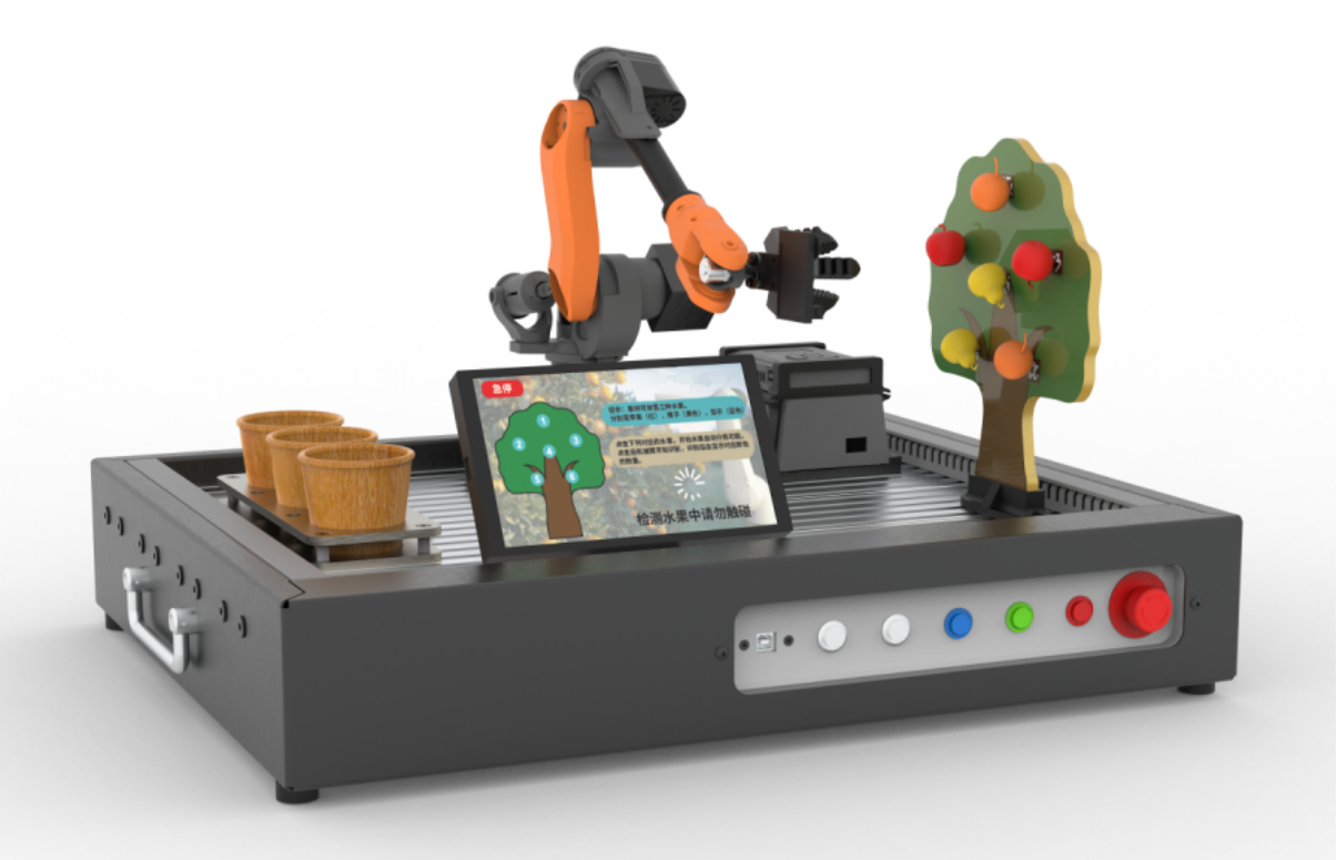 桌面六軸機器人*1;智能一體化底座*1;視覺模塊*1;水果配件包*1;實驗指導手冊*1